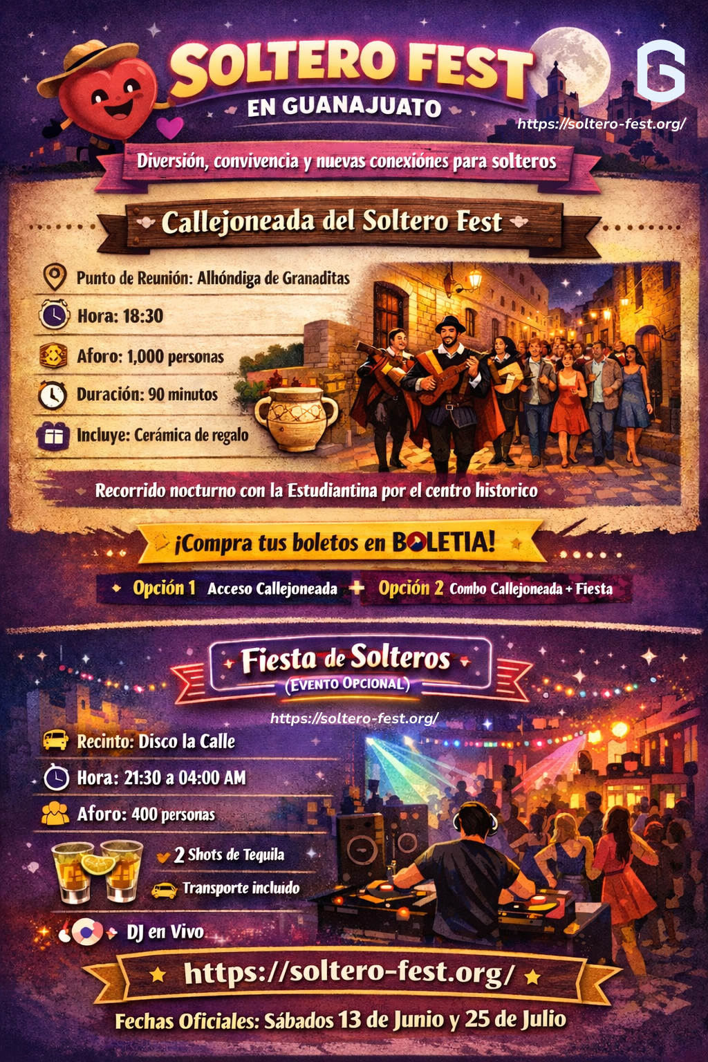 Soltero Fest es un evento oficial llevado a cabo en colaboración con autoridades locales, la Tuna Estudiantina de Guanajuato y la operadora turística Guanajuato VIP.